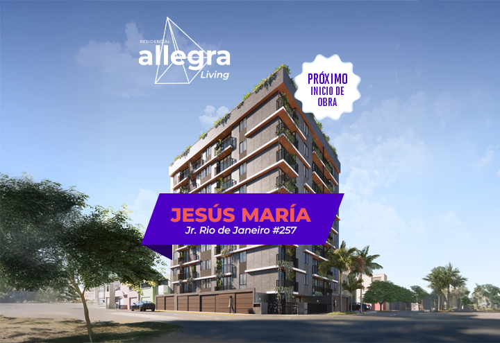 Allegra Living es un exclusivo edificio residencial de 9 pisos ubicado en Jesús María, un distrito céntrico y seguro de Lima.
